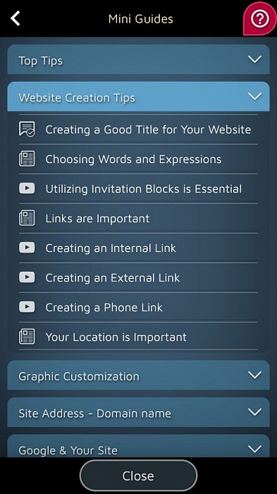 For at hjælpe dig med at navigere i processen med at skabe kvalitetshjemmesider kan du tjekke vores miniguides, som indeholder mange værdifulde tips og råd. Opgrader kun din hjemmeside til Smart- eller Pro- versionen, hvis du har brug for yderligere funktioner.